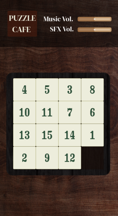 - 잔잔한 카페 분위기에서 즐기는 간단한 숫자 슬라이딩 퍼즐 게임입니다.